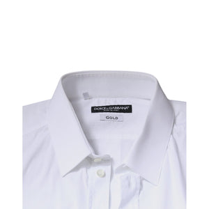Dolce & Gabbana White Cotton Long Sleeve GOLD Dress Shirt
