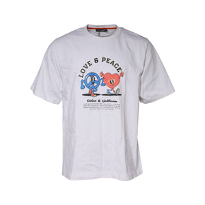 Dolce & Gabbana White Love & Peace Cotton Round Neck T-shirt