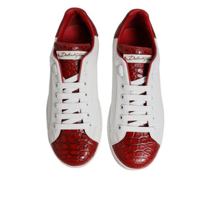 Dolce & Gabbana White Red Leather Portofino Men Sneaker Shoes