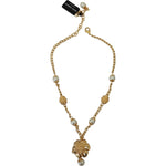 أضيئي مجموعتك بالتألق الرائع لهذه القلادة الرائعة الجديدة ذات اللون الزهري من Dolce & Gabbana. هذه القطعة مزينة بتفاصيل كريستالية ذهبية معقدة، وهي شهادة على الفخامة والأناقة. تم تعزيزه بمزيج من النحاس والبلاستيك والزجاج والمينا، ويتميز بلوحة ذهبية ووردية مذهلة، مما يجعله مثاليًا لإضافة لمسة من السحر إلى أي ملابس. يتم ربطه بأمان بمشبك على شكل سرطان البحر، مما يضمن ملاءمة مريحة وأنيقة. بفضل حرفيتها المعقدة وتفاصيل الشعار الأيقوني، تجسد هذه القلادة الفخامة الإيطالية الصنع.