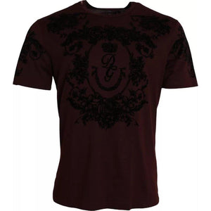 Dolce & Gabbana Maroon DG Crown Floral Crewneck Men T-shirt