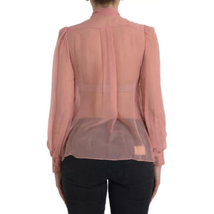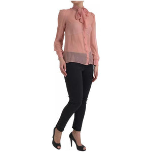 بلوزة دولتشي آند غابانا الوردية بأكمام طويلة وياقة أسكوت