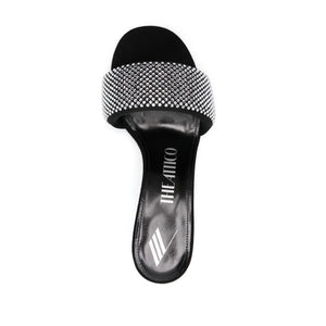 black crystal embellishment round open toe single arched strap open back branded leather insole 60mm mid sculpted heel leather sole slip-on style This piece comes complete with a protective dust bag. Rem strass embellished mules Size and Fit - Heel 2,4 in / 6 cm