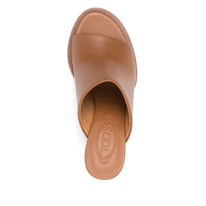 camel brown branded footbed round open toe mid heel Leather heel mules Size and Fit - Heel 2,8 in / 7 cm