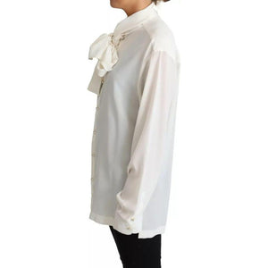 بلوزة دولتشي آند غابانا بيضاء مع قميص بياقة أسكوت وجزء علوي من الحرير