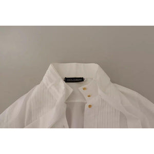 قميص رسمي بأكمام طويلة وياقة من القطن باللون الأبيض من دولتشي آند غابانا