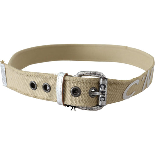 Costume National Beige Cotton Rustic Logo Buckle Belt