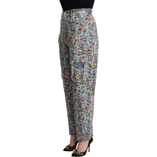 Dolce & Gabbana Blue Floral Print High Waist Denim Tapered Jeans