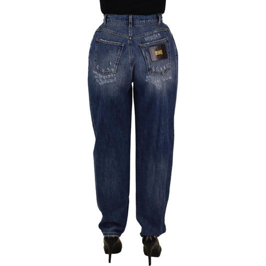 Dolce & Gabbana Blue Washed Cotton High Waisted Denim Jeans