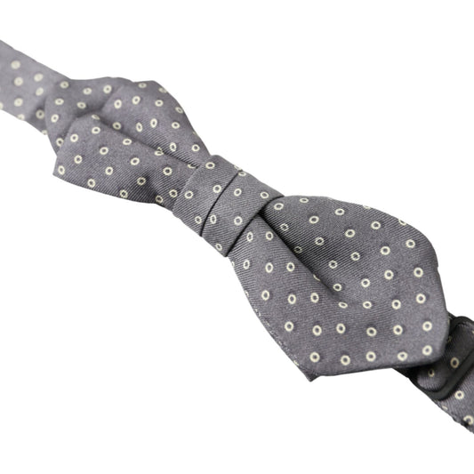 Dolce & Gabbana Gray Polka Dot Silk Adjustable Men Neck Papillon Bow Tie