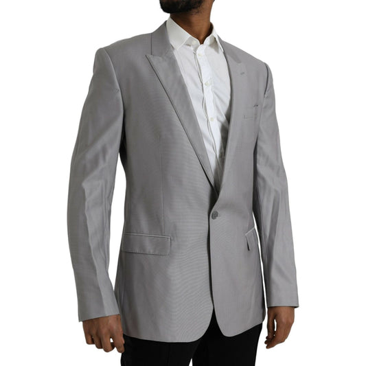 Dolce & Gabbana Gray Wool Silk Slim Fit Jacket Blazer