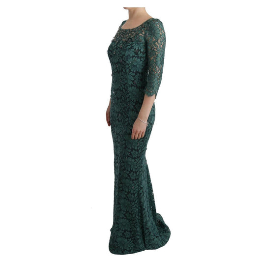 Dolce & Gabbana Green Floral Crystal Ricamo Sheath Dress