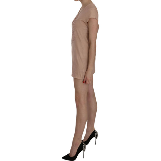 PINK MEMORIES Pink Lace Short Sleeve Shift Mini Dress