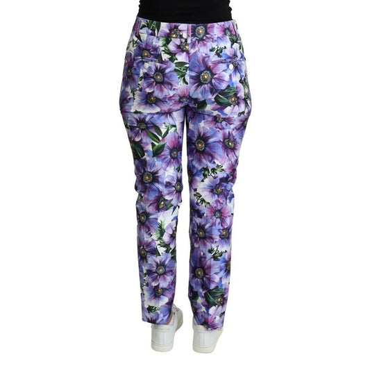 Dolce & Gabbana Purple Floral Print Tapered Cotton Pants