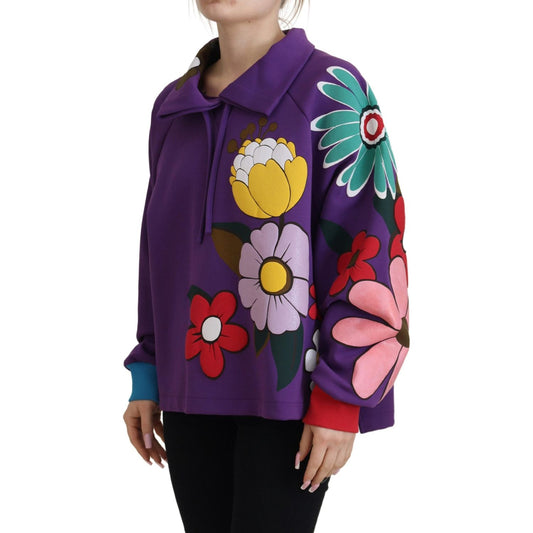 Dolce & Gabbana Purple Floral Print Pullover Cotton Sweater