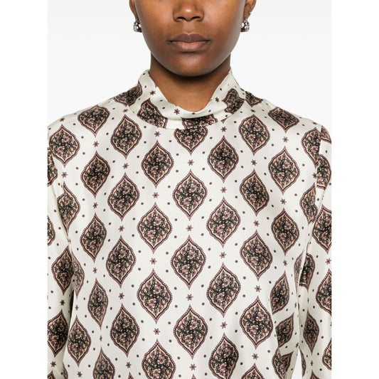 Alberta Ferretti Brown Silk Short Sleeves V-neck Pleated Top