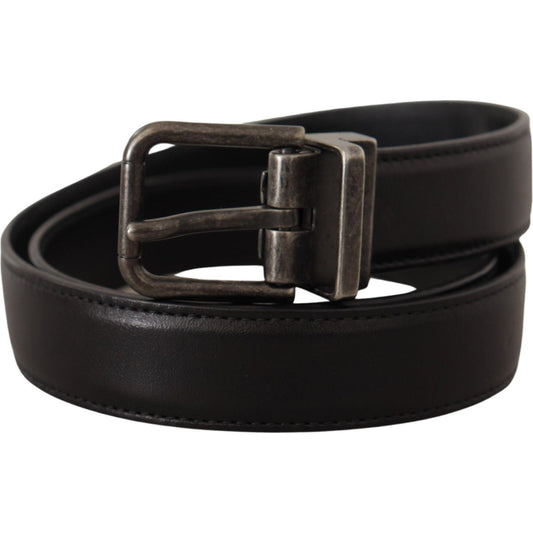 Dolce & Gabbana Black Leather Chrome Logo Metal Buckle Belt