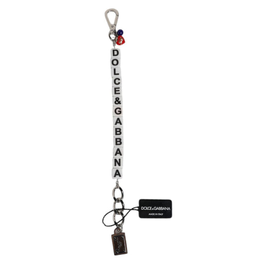 Dolce & Gabbana Black White DG Logo Silver Men Keychain Polyester Keyring