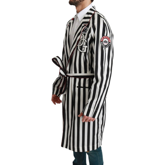 Dolce & Gabbana Black Coat Nightgown White Cotton Robe