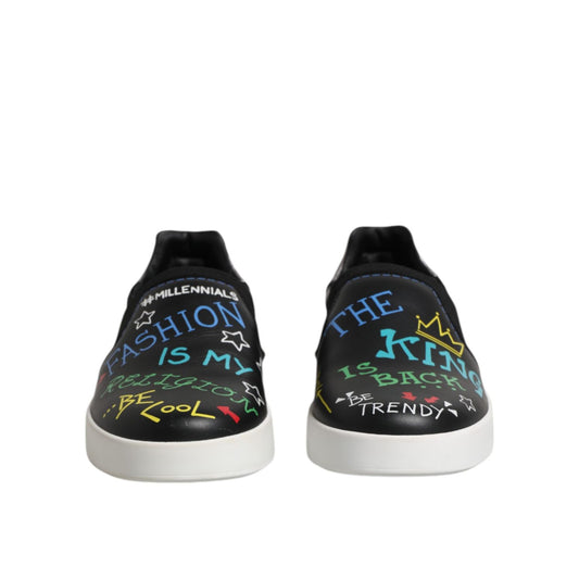 Dolce & Gabbana Black Tropical Slip On Men Sneakers Shoes