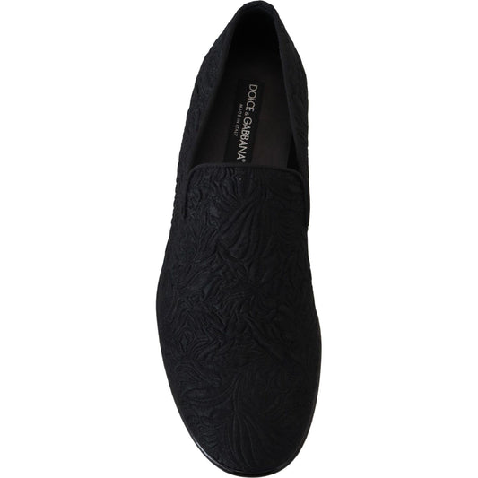 Dolce & Gabbana Black Brocade Loafers Formal Shoes