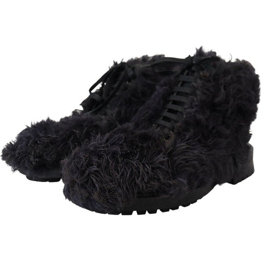 Dolce & Gabbana Black Leather Combat Shearling Boots Shoes