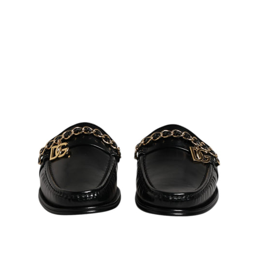Dolce & Gabbana Black Leather DG Chain Embellished Sandals Shoes