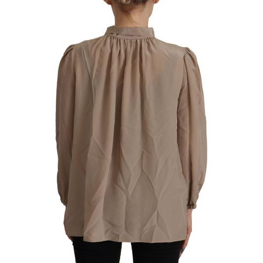 Dolce & Gabbana Brown Waistband Sleeves Ascot Collar Top Blouse