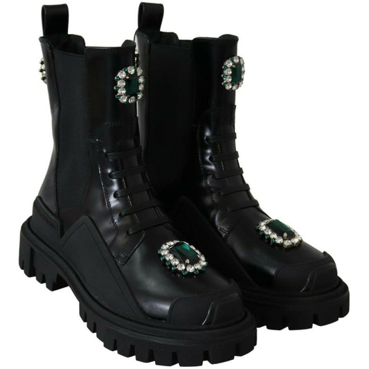 Dolce & Gabbana Black Leather Crystal Combat Boots