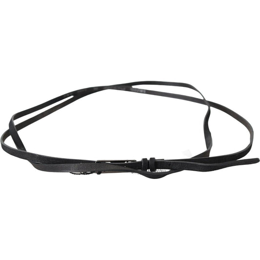 Costume National Black Leather Skinny Logo Buckle Belt