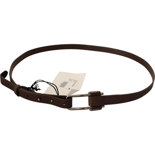 Scervino Street Brown Genuine Leather Black Logo Buckle Belt