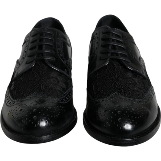 Dolce & Gabbana Black Leather Floral Lace Dress Formal Shoes