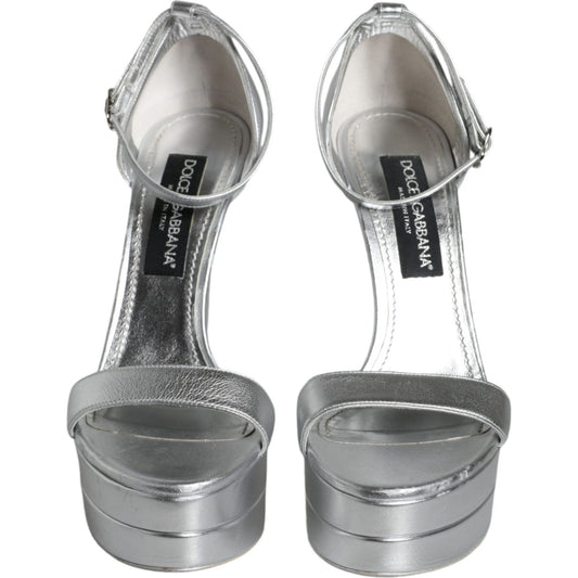Dolce & Gabbana Silver KEIRA Heels Ankle Strap Sandals Shoes