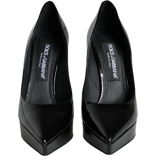 Dolce & Gabbana Black Leather Platform Heels Pumps Shoes