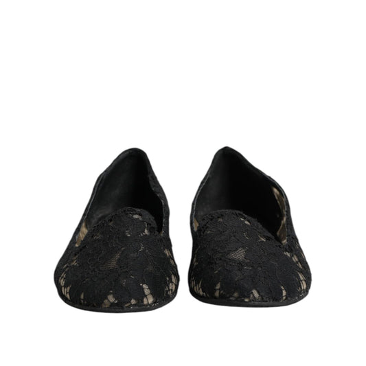 Dolce & Gabbana Black Taormina Lace Slip On Flats Shoes
