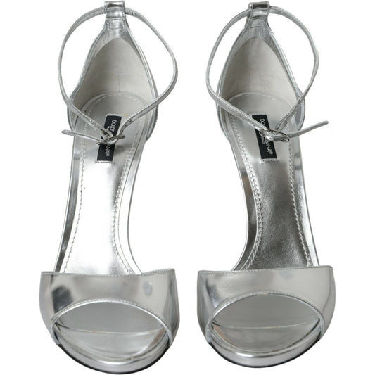 Dolce & Gabbana Silver KEIRA Leather Heels Sandals Shoes