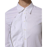 AGLINI White Cotton Collared Long Sleeves Ruffle Top Shirt