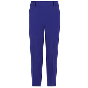 Soft blue trousers with elasticated waist, belt loops, two side patch pockets, straight hem. Light cady trousers