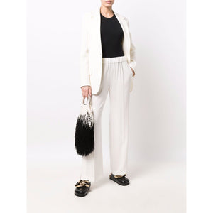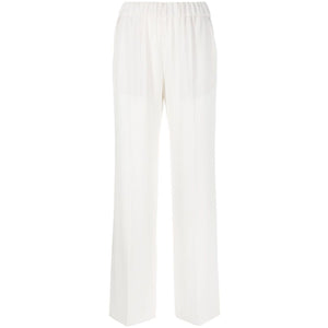 white wide leg high-waisted pressed crease side slits elasticated waistband two side slit pockets Cady elasticated trousers Size and Fit - This piece fits true to size. We recommend you get your regular size. Model is 1,75m / 5ft 8in wearing size 40 (IT)