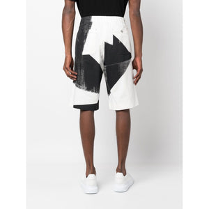 abstarct-print cotton Bermuda shorts from Alexander McQueen featuring white/black, cotton, abstract pattern print, front button and zip fastening, knee-length, two side slit pockets and two rear welt pockets. Drawstring cotton shorts Size and Fit - This piece fits true to size. We recommend you get your regular size. Model is 1,84m / 6ft 1in wearing size 48 (IT)