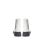 Alexander McQueen brushed leather Chelsea boots in white, tone-on-tone topstitching, oversize flared notched sole, layered heel in black, contrasting elastic bands at sides. Composition: 100% Leather-Sku interior:23AP103