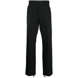 drawstring-hem cotton trousers from Alexander McQueen featuring black, cotton, belt loops, button fastening, zip fly fastening, belted waist tabs, two side inset pockets, rear jetted pocket, rear button-fastening jetted pocket, straight leg and drawstring hem. Organic cotton trousers Size and Fit - This piece fits true to size. We recommend you get your regular size. Model is 1,84m / 6ft 1in wearing size 48 (IT)