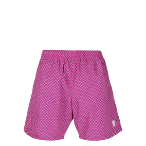 skull-print swim shorts from Alexander McQueen featuring fuchsia pink, blue, skull print and elasticated waistband. Be mindful to try on swimwear over your own garments.. Logo swimsuit Size and Fit - This piece fits true to size. We recommend you get your regular size. Model is 1,84m / 6ft 1in wearing size M