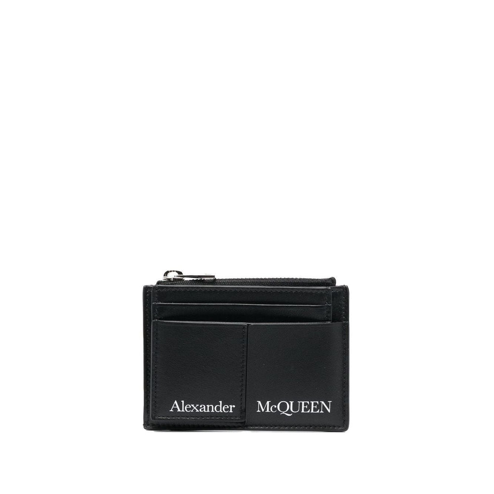 logo print cardholder from Alexander McQueen featuring black/white, calf leather, logo print to the front, zip-fastening compartment and card slots. Logo leather coin zip holder Size and Fit - Width 4,72 in / 12 cm