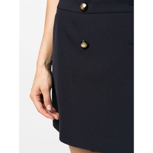 wool-cotton blend mini wrap skirt from Alexander McQueen featuring navy blue, wool-cotton blend, twill weave, wrap design, embossed gold-tone buttons, high waist, front button fastening, straight hem and thigh-length. Wool mini skirt Size and Fit - This piece fits true to size. We recommend you get your regular size. Model is 1,75m / 5ft 8in wearing size 40 (IT)