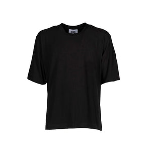alpha studio, black solid color crew neck t-shirt, stretch jersey, regular fit.
