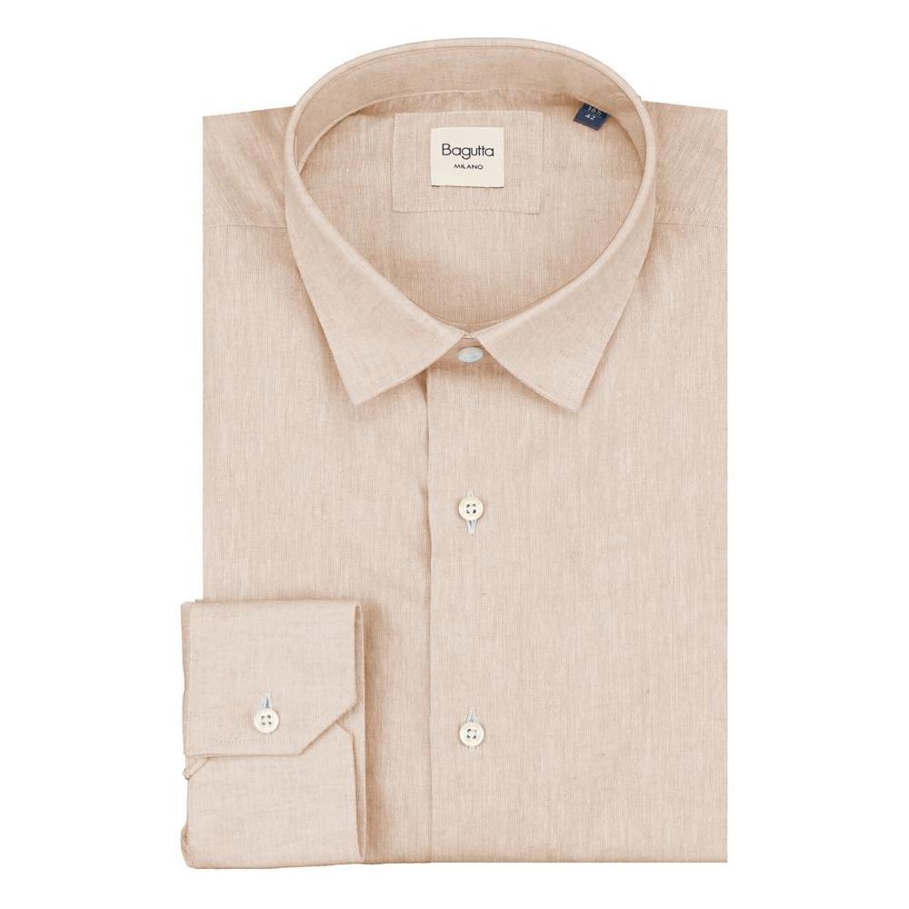 Elevate your ensemble with the Bagutta slim fit shirt, a sartorial staple that embodies sophistication. Crafted from a sublime blend of linen and cotton, this shirt offers both comfort and elegance. Adorned with an Italian collar, long sleeves, and lustrous mother-of-pearl buttons, it’s a fashion must-have for the discerning gentleman. Perfect for balmy days or chic events, its beige hue compliments any style with finesse.