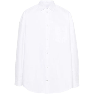 white cotton classic collar chest patch pocket drop shoulder long sleeves press-stud fastening cuffs two side slit pockets curved hem front press-stud fastening When buying this unisex item, keep in mind that it is graded in standard men's sizing. Oversized cotton shirt Size and Fit - SLEEVE LENGTH: 92.0 Centimetres. LENGTH: 95.0 Centimetres.