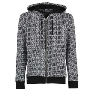 Unleash your inner fashionista with the striking Balmain Monogram Hooded Sweatshirt. Exuding edge and luxury, it’s a not-so-subtle nod to high fashion with its iconic monogram print. Crafted in Italy, this cotton masterpiece features a practical drawstring and a sleek zipper closure paired with two front pockets for that perfect blend of function and style.