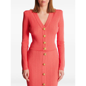 coral pink front button fastening logo-embossed buttons epaulettes plunging V-neck V-necked cardigan Size and Fit - This piece fits true to size. We recommend you get your regular size. Model is 1,75m / 5ft 8in wearing size 36 (FR)